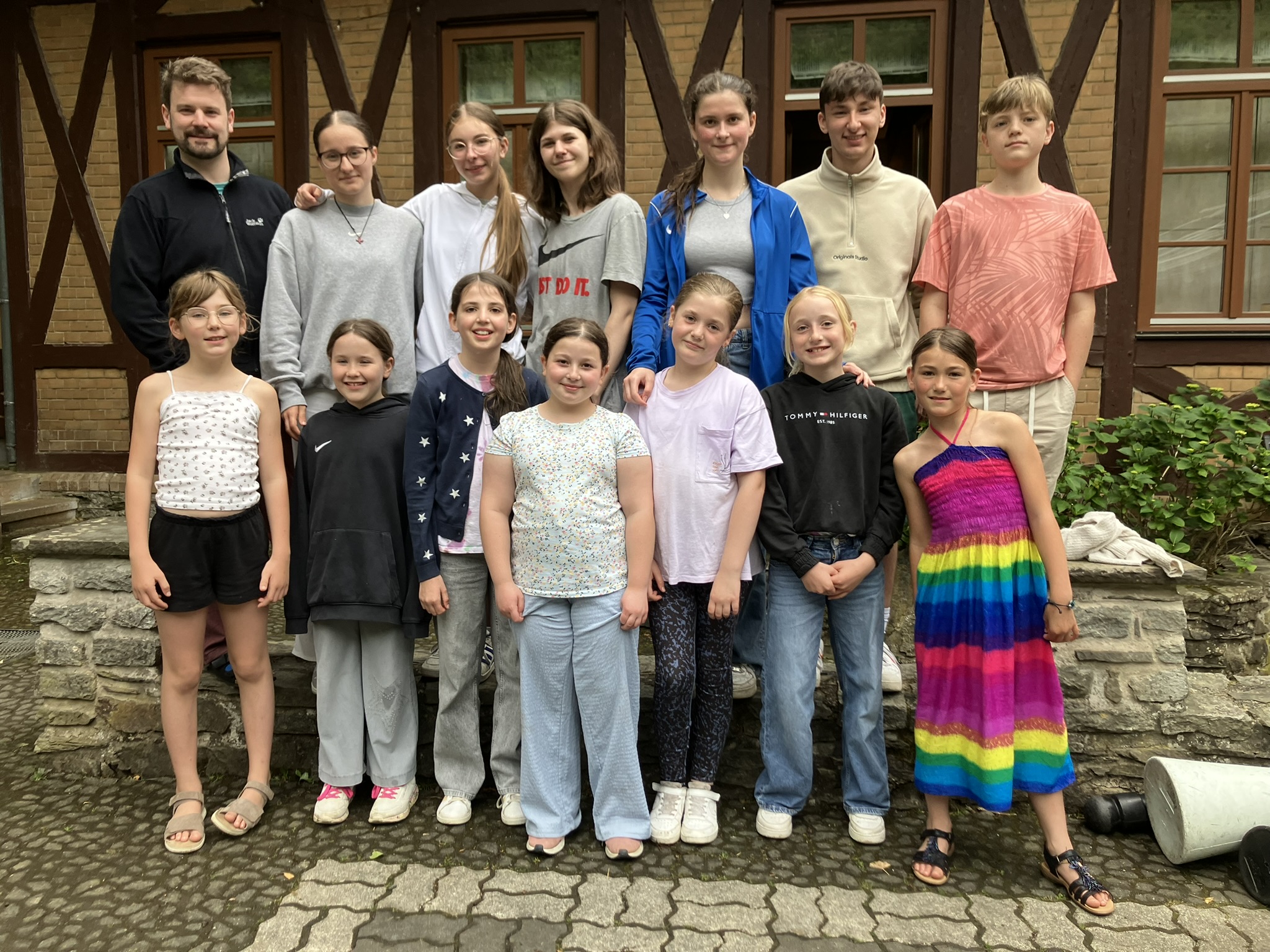 Bei uns wird nicht nur gesungen, sondern Musik mit dem ganzen Körper erlebt: mit Bewegung, Rhythmus und ganz viel Spaß. Unser Repertoire ist bunt gemischt – von ganz neuen bis zu ganz alten Liedern, von Kirchenliedern bis zu Liedern aus aller Welt. Immer wieder probieren wir Neues aus, sei es bei einer kleinen „Studioaufnahme“ eigener Stücke oder mit Body Percussion, bei der Klatschen, Stampfen und Schnipsen plötzlich zu Musik werden. So bleibt jede Probe lebendig und abwechslungsreich.